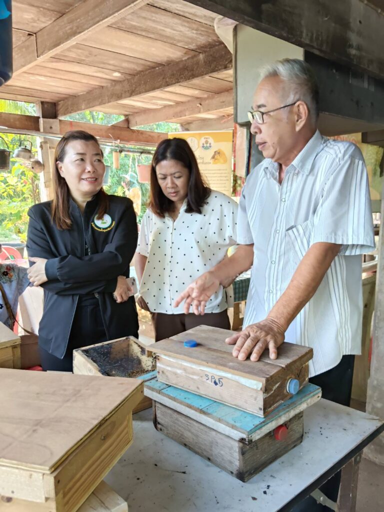 เมื่อวันที่ 31 มีนาคม 2569 เวลา 09.30 น. นางสาววาสนา สง่างาม หัวหน้าสำนักงานกองทุนฟื้นฟูและพัฒนาเกษตรกร สาขาจังหวัดสมุทรสงคราม พร้อมด้วย นางศศิวิมล คงรักษา พนักงานอาวุโส ร่วมมอบกล่องชันโรงให้แก่สมาชิกกลุ่มวิสาหกิจชุมชนวิถีเกษตรและเลี้ยงสัตว์แบบครบวงจรตำบลโรงหีบ ภายใต้โครงการอบรมเชิงปฏิบัติการวิสาหกิจชุมชนวิถีเกษตรและเลี้ยงสัตว์เศรษฐกิจแบบครบวงจรตำบลโรงหีบ ณ ที่ทำการกลุ่มวิสาหกิจชุมชนฯ หมู่ที่ 7 ตำบลโรงหีบ อำเภอบางคนที จังหวัดสมุทรสงคราม